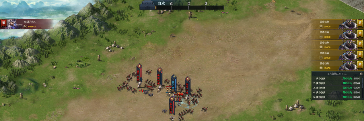 3. 城战中,玩家队列位于屏幕左边,右边为npc、他国守军队列。可了解当前战斗中敌我双方的部队列队状况,随时调整兵力增援。