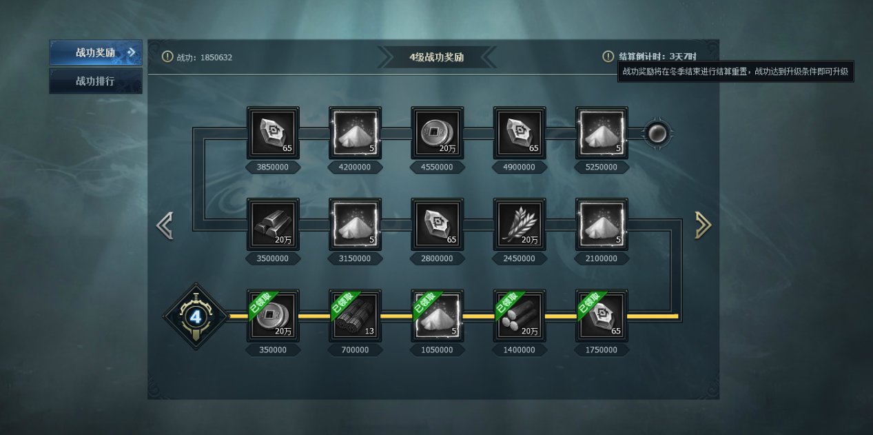 5. 每次军团城战结束后,无论成败都可获得战功,战功达到指定目标条件可获得大量奖励。