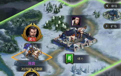 为了让玩家快速获取更多武将将魂,游戏中设计了武斗玩法。玩家开启武斗玩法后,每个整点世界地图本国城市与相邻城市会随机刷新3个武斗npc。玩家完成武斗npc所在城市的民情任务后,就可以与该武将进行武斗了。
