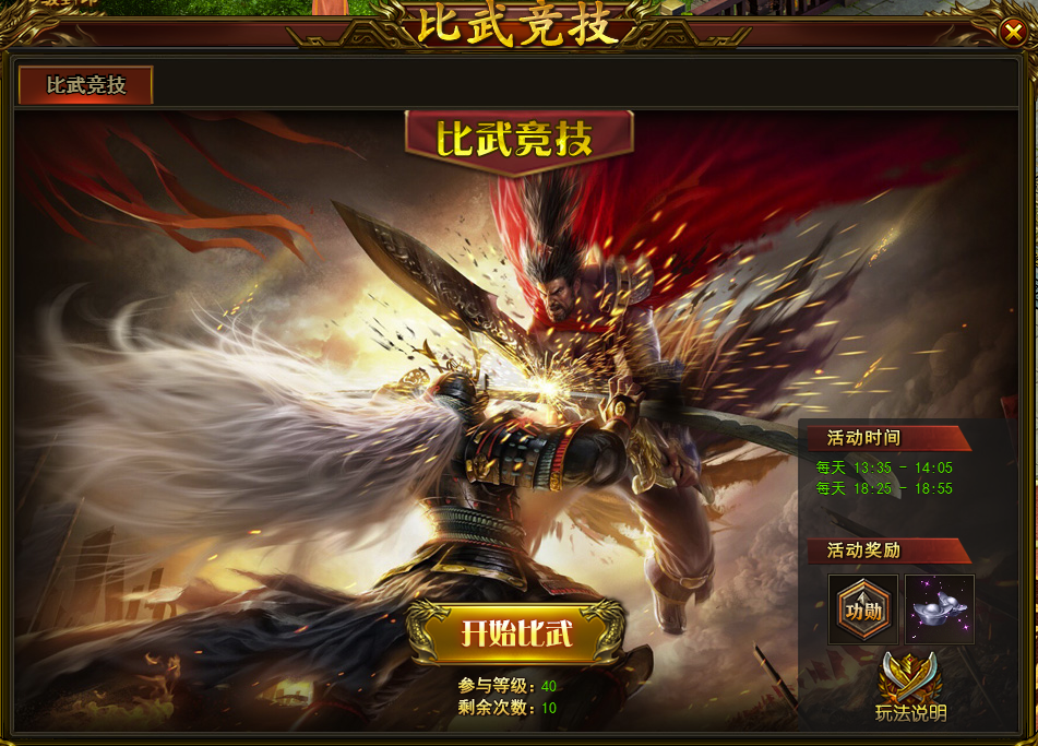 1. 参加比武场,匹配挑战对手,提升段位,获得奖励;