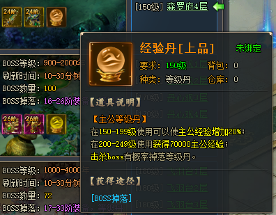 使用等级丹可快速获得主公等级。击杀野外BOSS有概率掉落等级丹。