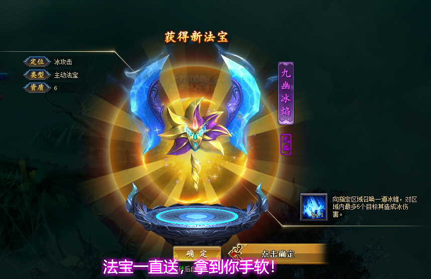 英雄装备上法宝后,不仅可以获得属性的加成,还能获得新的技能!每个法宝都具有各自不同的技能效果,有了技能之后将使我们在后续任务的过程中更快的击败怪物。