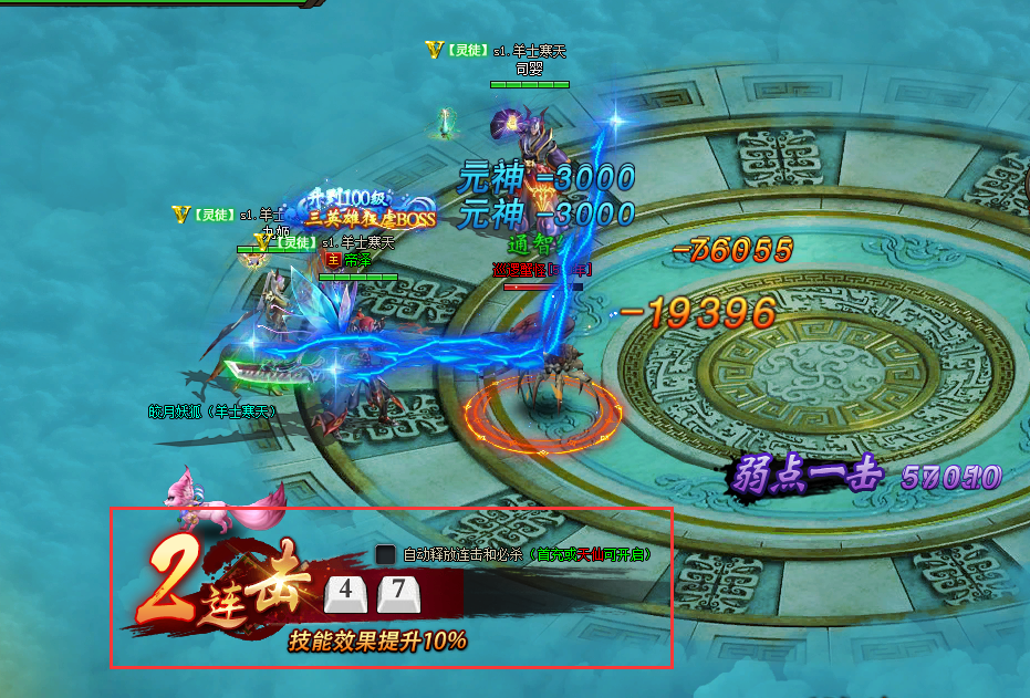 当获得第一个仙职后,我们将惊奇的发现,每次释放技能后将可以触发连击效果了,每次成功的释放连击都将额外提升本次技能的伤害效果。连击的触发只存在于相同系别的法宝技能之间,一旦释放不同系别的法宝技能就将打断当前的连击效果。因此,合理搭配英雄携带的法宝,将成为触发连击的关键所在。连续释放三次连击后,将触发【必杀技】,必杀技具备超高的伤害以及更大的范围!