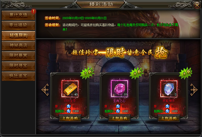规则:每天可以用超低的折扣购买各种稀有物品