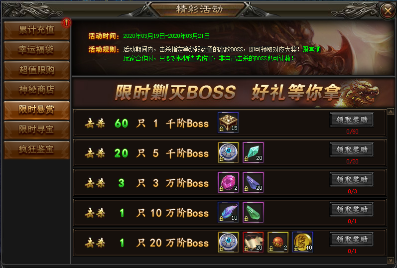规则:根据击杀对应阶段的BOSS数量领取奖励