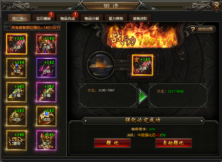 消耗强化石提升强化等级