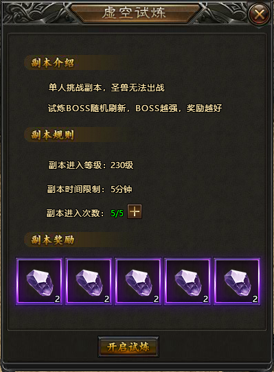 虚空试炼可以获得大量强化石,是每天必做的日常活动之一。
