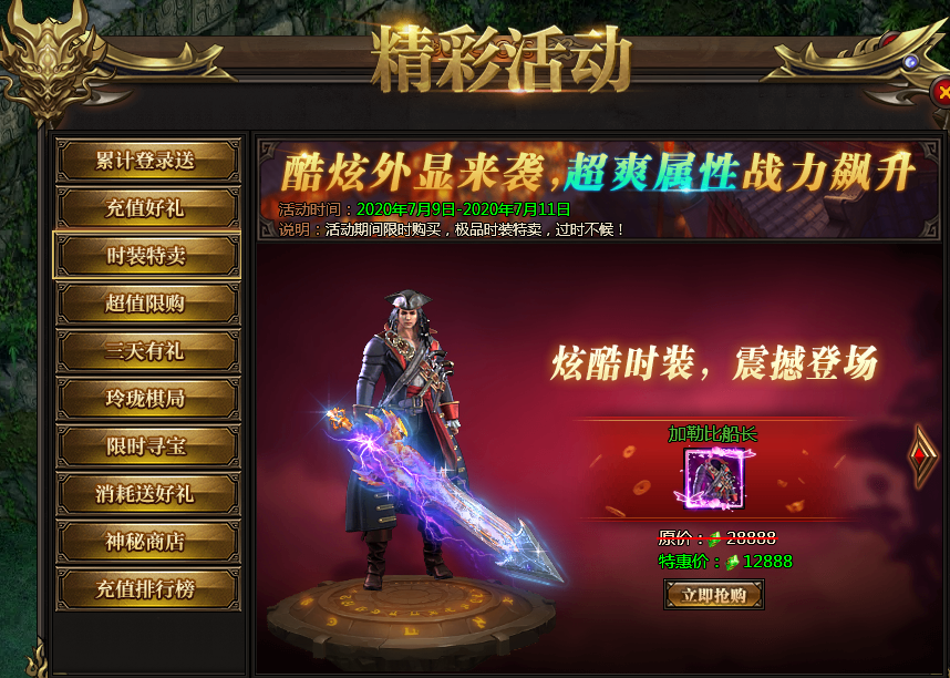活动说明:各种稀有道具限时购买