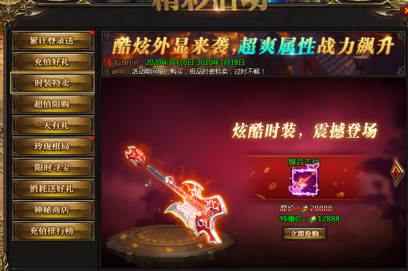 活动说明:各种稀有道具限时购买