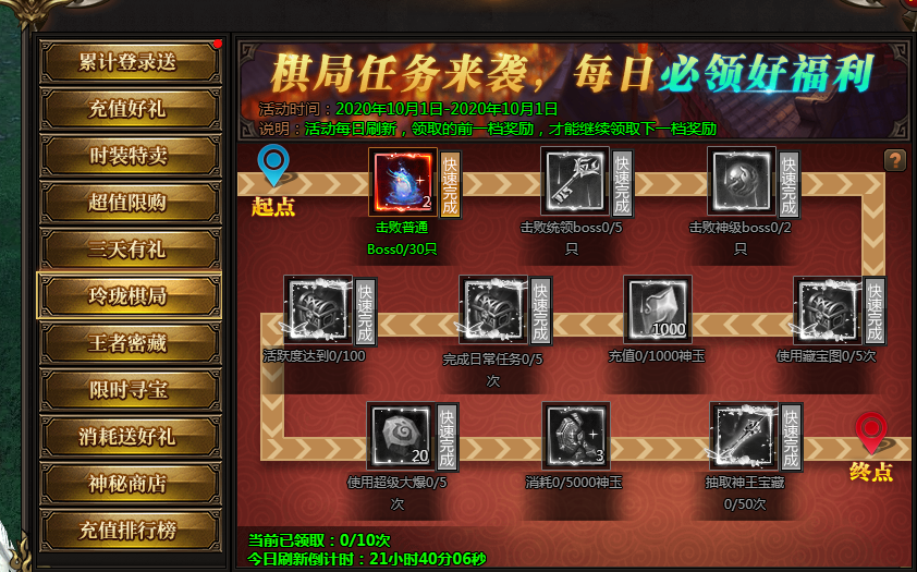 活动说明:完成日常任务,即可领取对应奖励