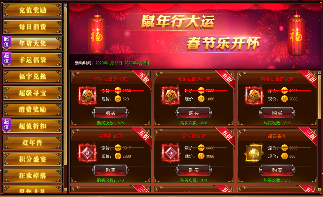 3-5折出售部分道具,活动期间售完即止,不进行每日重置