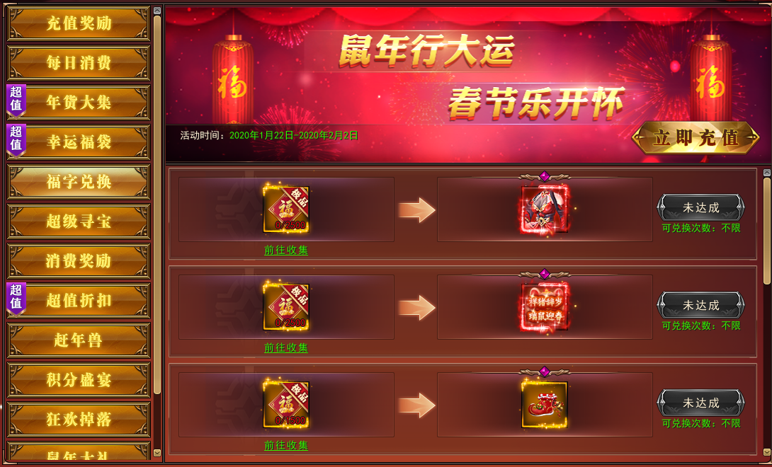 1. 收集对应数量的“福”字可兑换珍稀道具