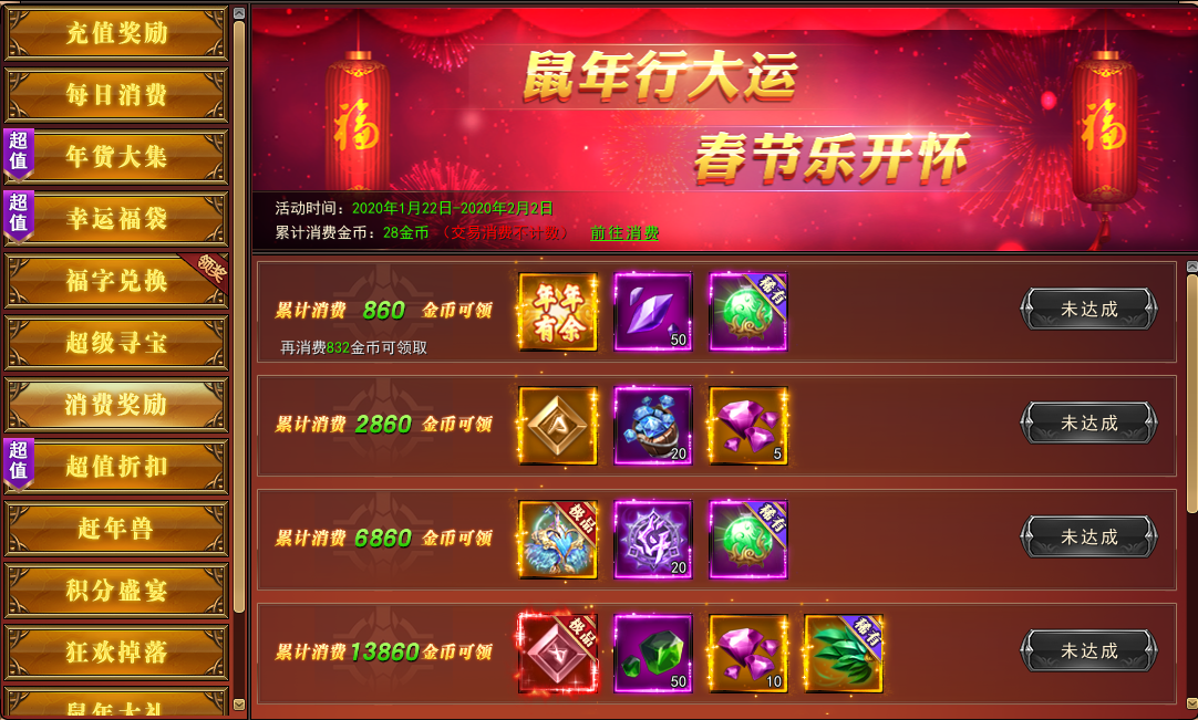 3. 消费档次分为四档,领取第一档奖励后才可见到第二档