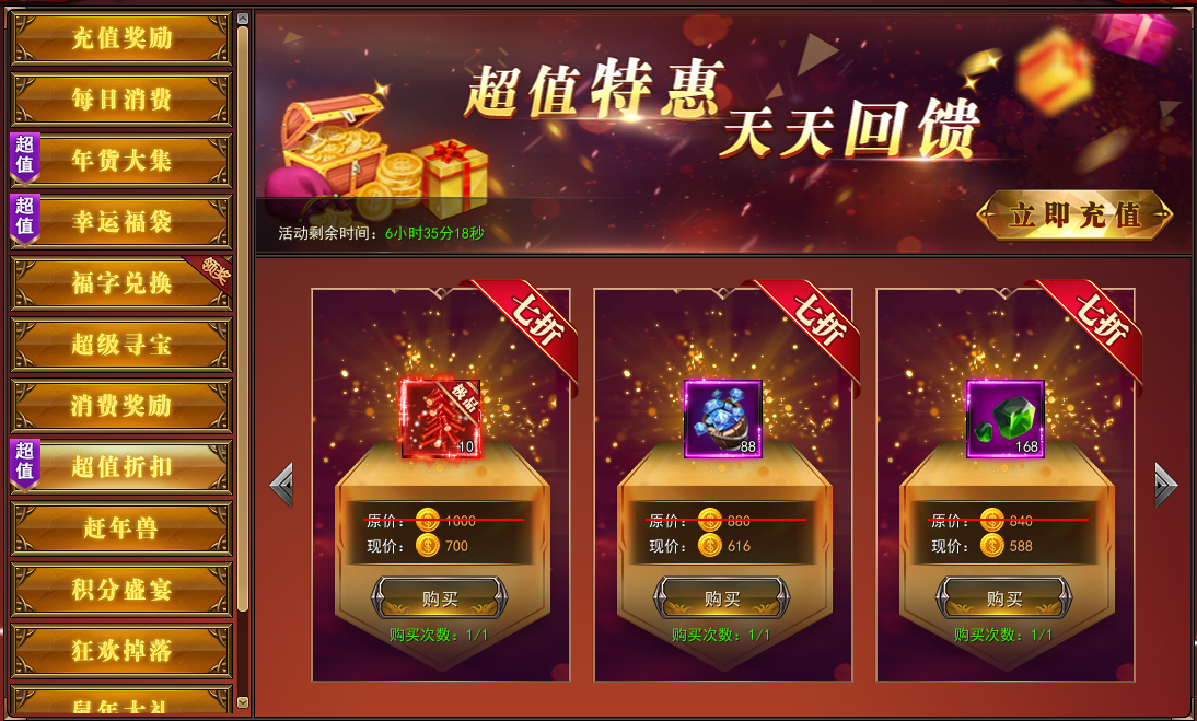 2. 活动期间,充值每日重置,天天充天天领