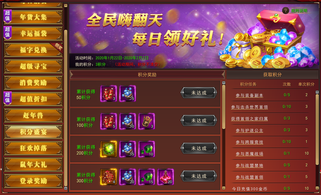 3. 活动期间,累计积分达到指定值可领取奖励
