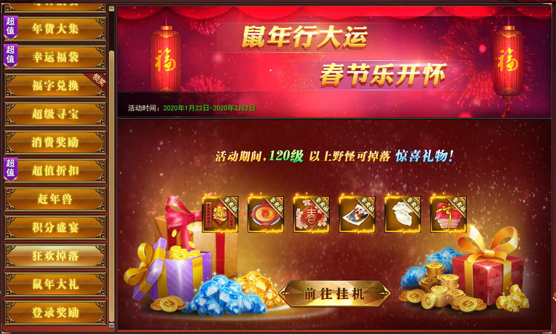 1. 活动期间,击杀120级以上野怪可掉落惊喜礼物