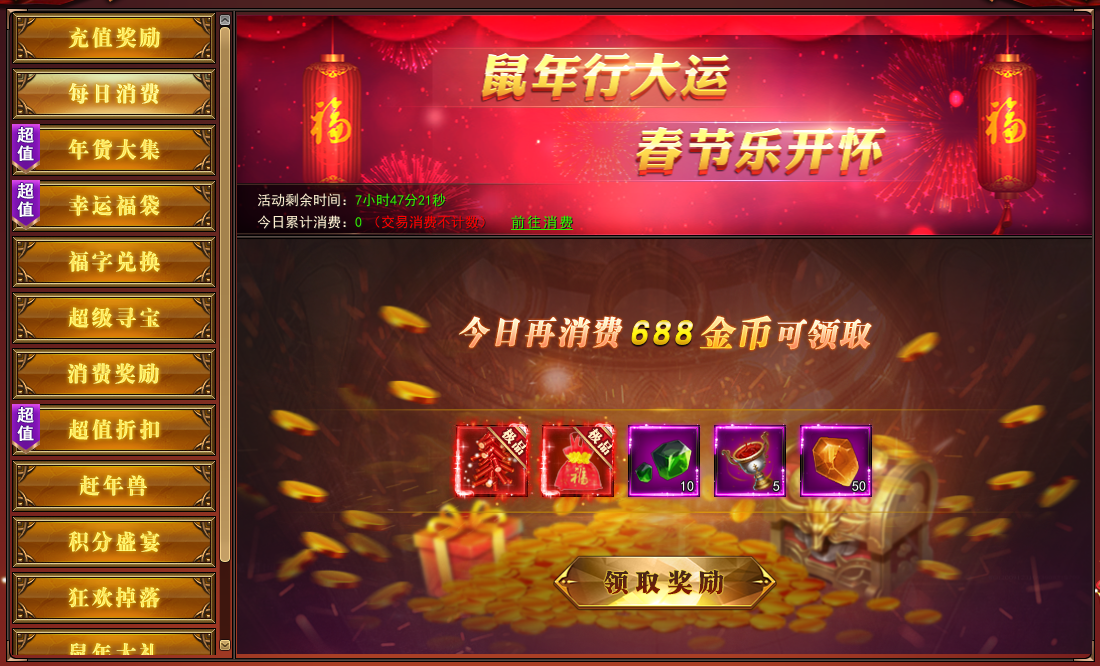 2. 活动每日重置,消费领好礼