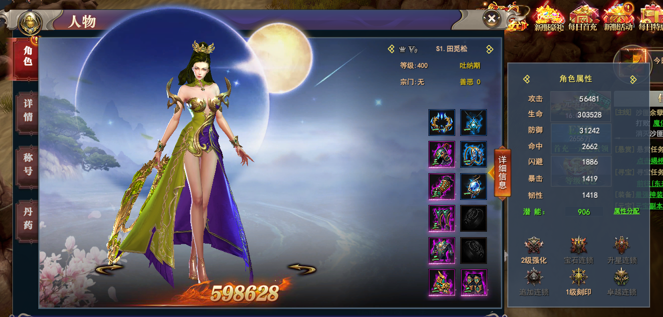 人物系统是游戏中的基础系统,在这个系统中,用户可以查看角色外观或属性;查看装备状况;服用各种属性丹药及穿戴各种称号
