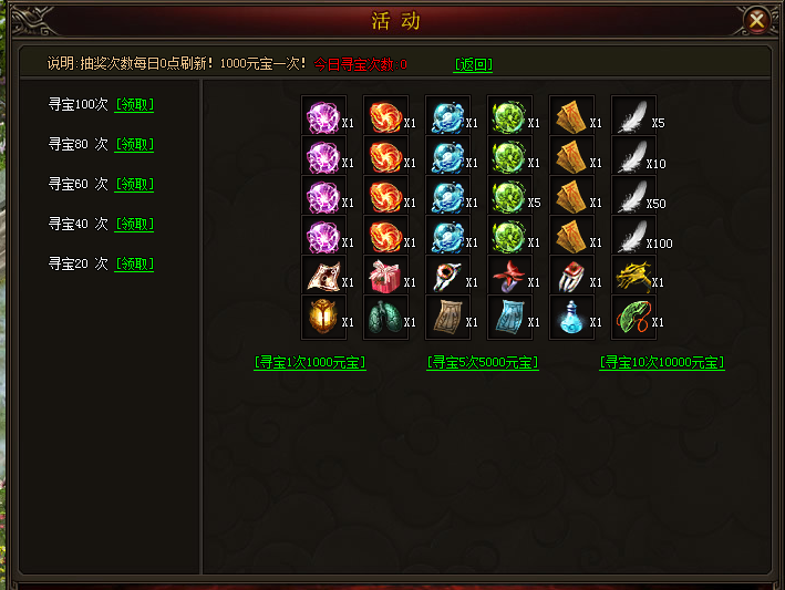 1. 单笔每充值2W元宝可获得一次抽奖机会