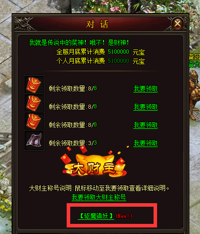 活动期间新增:财神npc 注:玩家在月底NPC处累计消费元宝