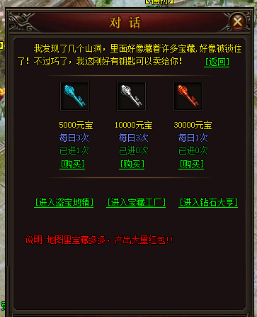 新增探宝地图---每日充值98元且V3可进入红包圣地