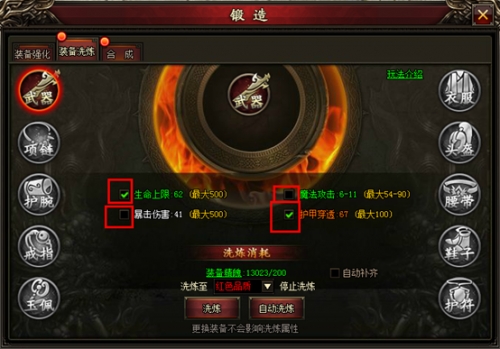 洗炼功能是直接对装备部位进行洗炼,最大为四条属性。