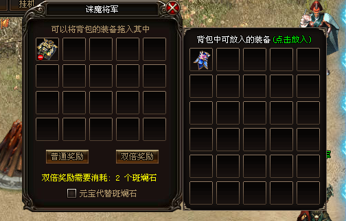 玩家将多余的装备投入回收时能有机率获得经验、金币、宝宝等奖励,同时可以获得一个结阵数,结阵数达到一定数量时在土城可刷出一个BOSS,BOSS掉落大量经验及40级、50级装备