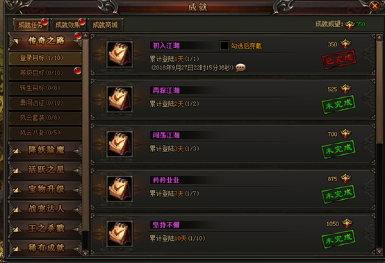 2. 成就威望不可消耗,会在排行榜种进行排名。