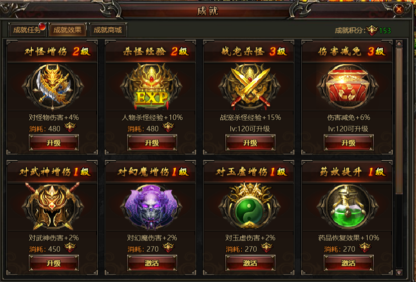 3. 成就积分可以消耗,用来选择增幅成就效果,等级越高效果越强。