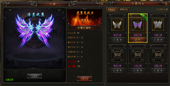 4.光翼开启后可消耗羽化丹进行进阶,强化属性。