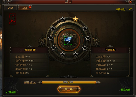 3. 当战功值达到一定数量后,可通过战旗面板升级和强化战旗,提升人物属性。