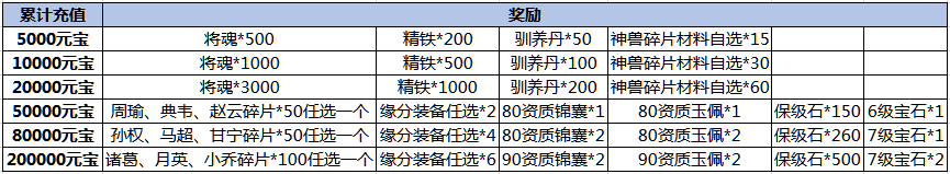 (举例:小明在活动期间充值80000元宝,则在活动结束后小明可获得充值8000元档的奖励)
