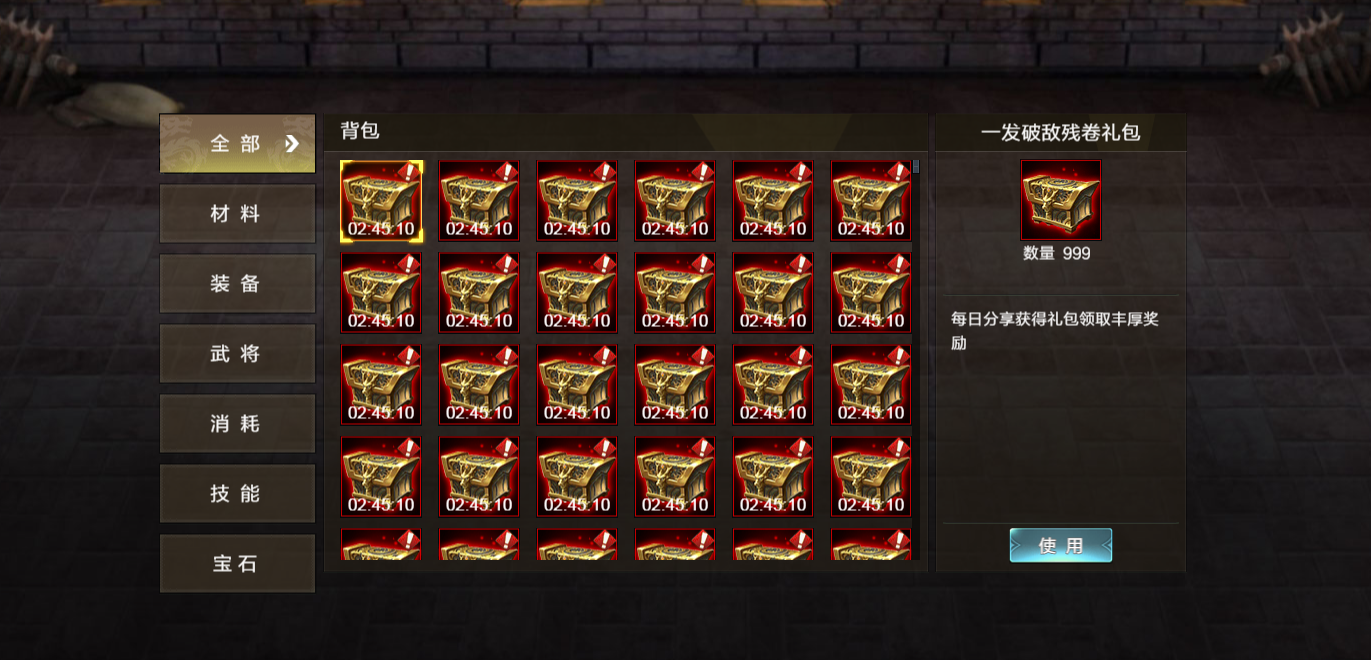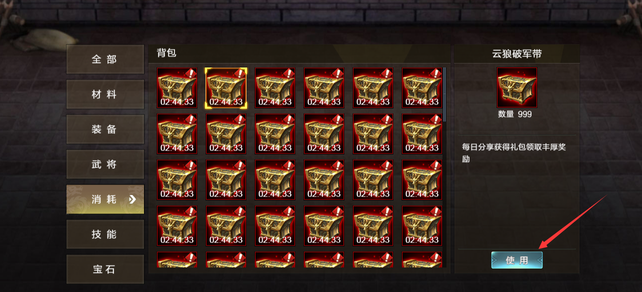 (1)宝箱类物品可以在背包使用