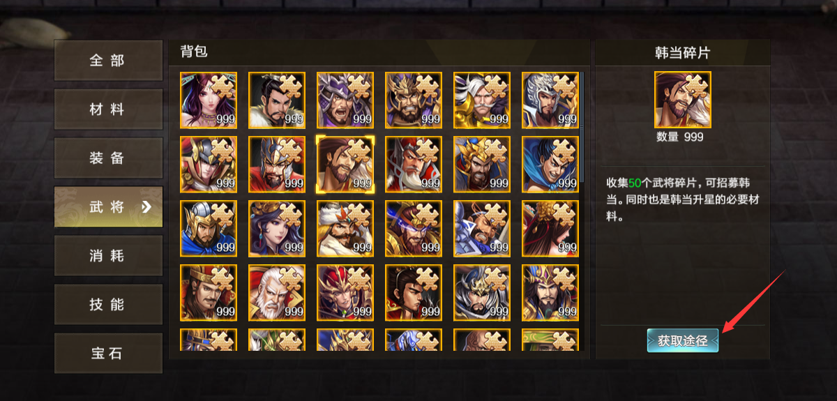 (3)武将碎片可以点击跳转到获取途径