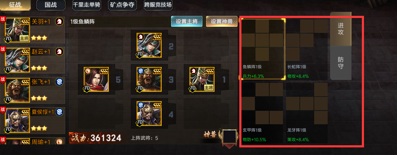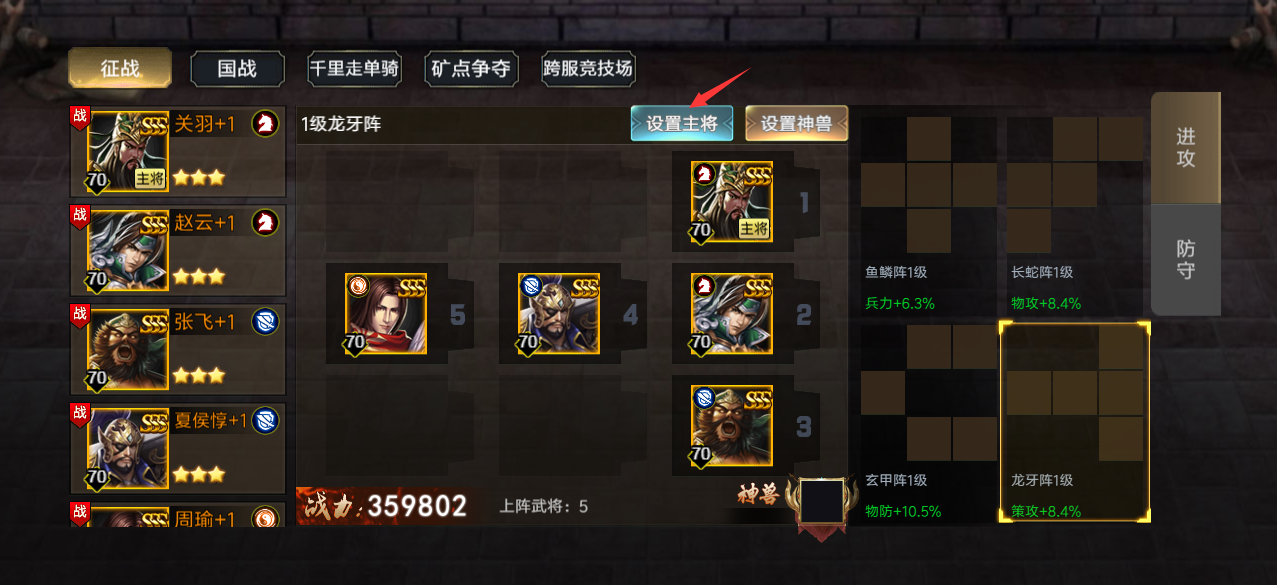 设置攻击阵型: