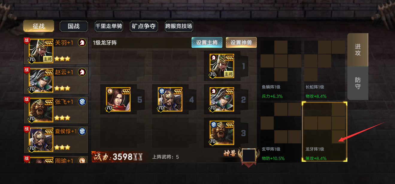 (5)点击出战部署,可以打开布阵,进行布阵的相关操作