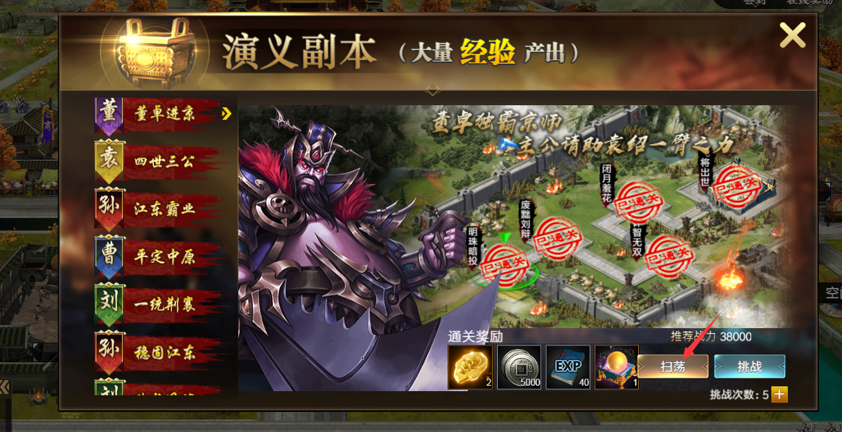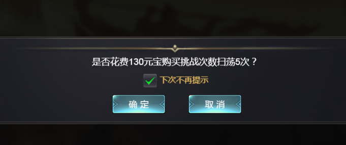 (5)扫荡次数每日免费5次,消耗完之后可以用元宝进行购买次数