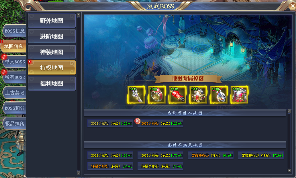 至尊4以上玩家可以开启专属BOSS挑战,通过专属门票可以进入专属BOSS副本,专属BOSS有几率掉落高级装备合铸魂石等,专属BOSS为个人挑战,每天有体力次数限制!