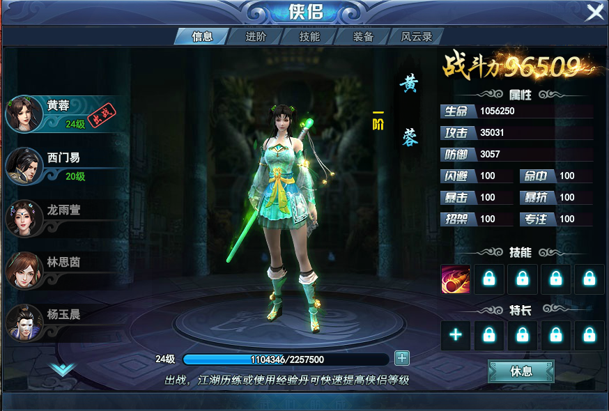 侠侣技能:每名侠侣都拥有独一无二的强大技能,使用【技能残卷】可以对技能进行升级,
