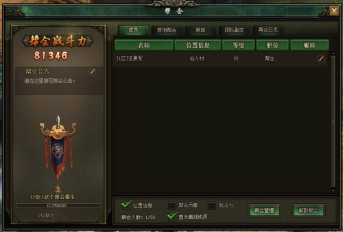 2、创建帮会,需要消耗一定额度的银两或元宝,创建成功后帮会等级为