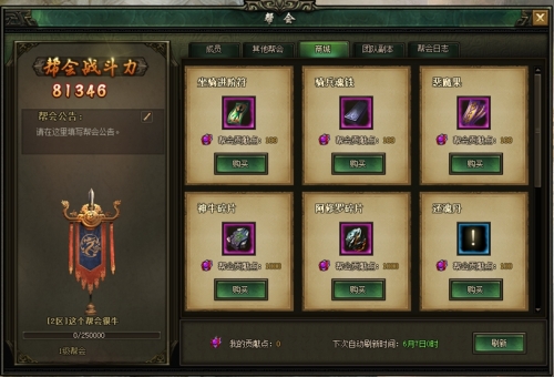 4、加入帮会后,玩家可通过完成帮会日常任务、捐献装备来获取帮会贡献度,在本帮会中,使用帮会贡献度兑换帮会商城内物品。