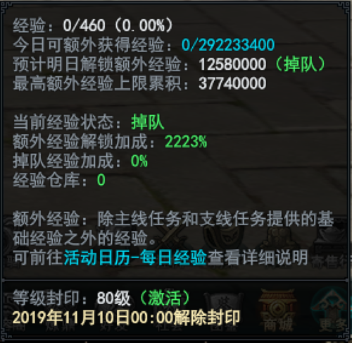 掉队追赶机制,后进服的小伙伴们不用担心等级跟不上的问题,游戏里有追赶机制,很快就能追上来了,除了主线外,其他所有任务都会有额外加成,与服务器其他玩家差的越多,加成就越多,小伙伴们加油升级!
