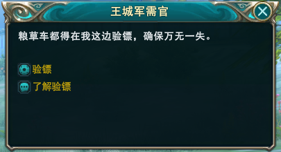 军需玩法分为三部分内容,接镖、运镖和劫镖
