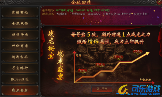 活动说明:活动期间,在战龙秘宝中,每寻宝5次,可额外获得1点战龙之力,获取无上限!