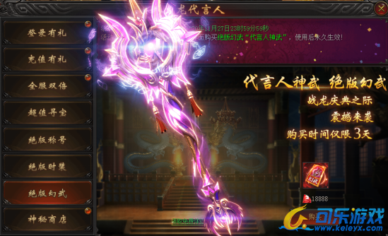 活动说明 : 活动期间,可在活动界面购买绝版幻武“代言人神武”,使用后永久生效。