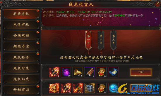 活动说明:活动期间,每日登录游戏可领取奖励,激活至尊特权可额外领取一份!