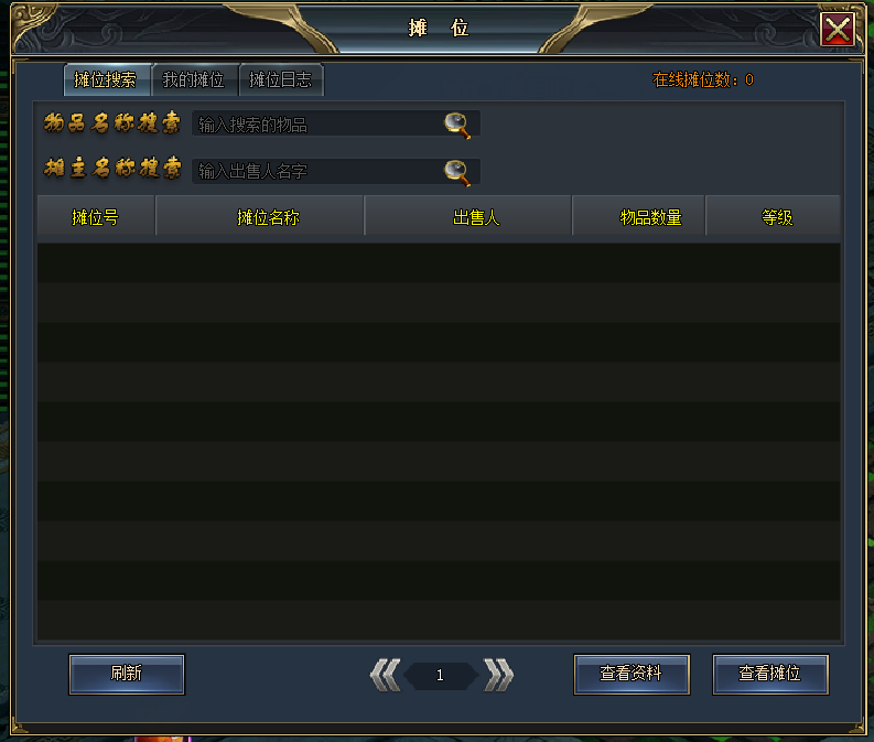 通过背包界面随身摊位按钮开启摊位界面。摊位搜索可根据摊主名称或物品查找购买物品。
