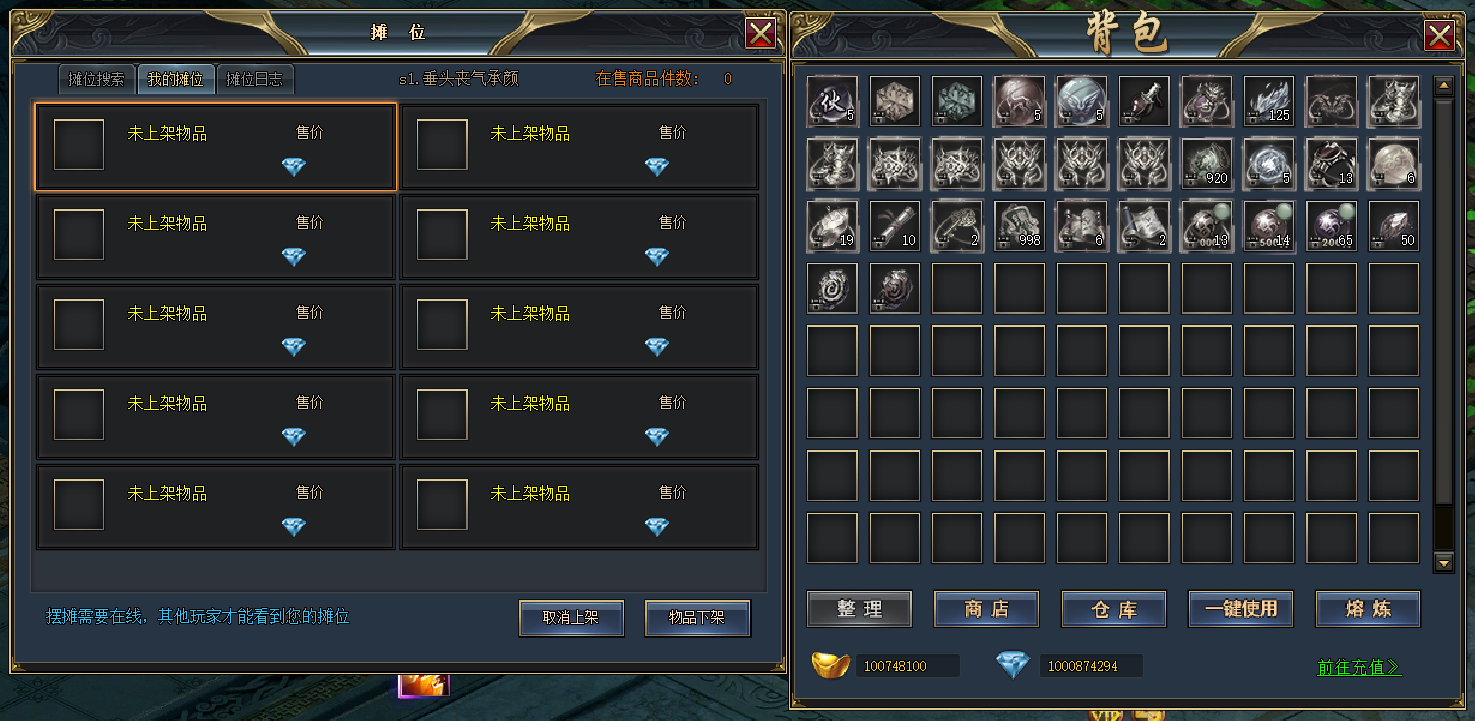 在我的摊位界面可上架道具进行出售。只可出售非绑定物品。