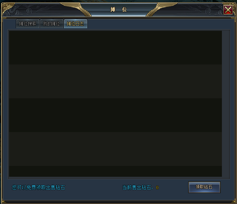 摊位日志可查看道具出售情况,领取出售道具获得的钻石。