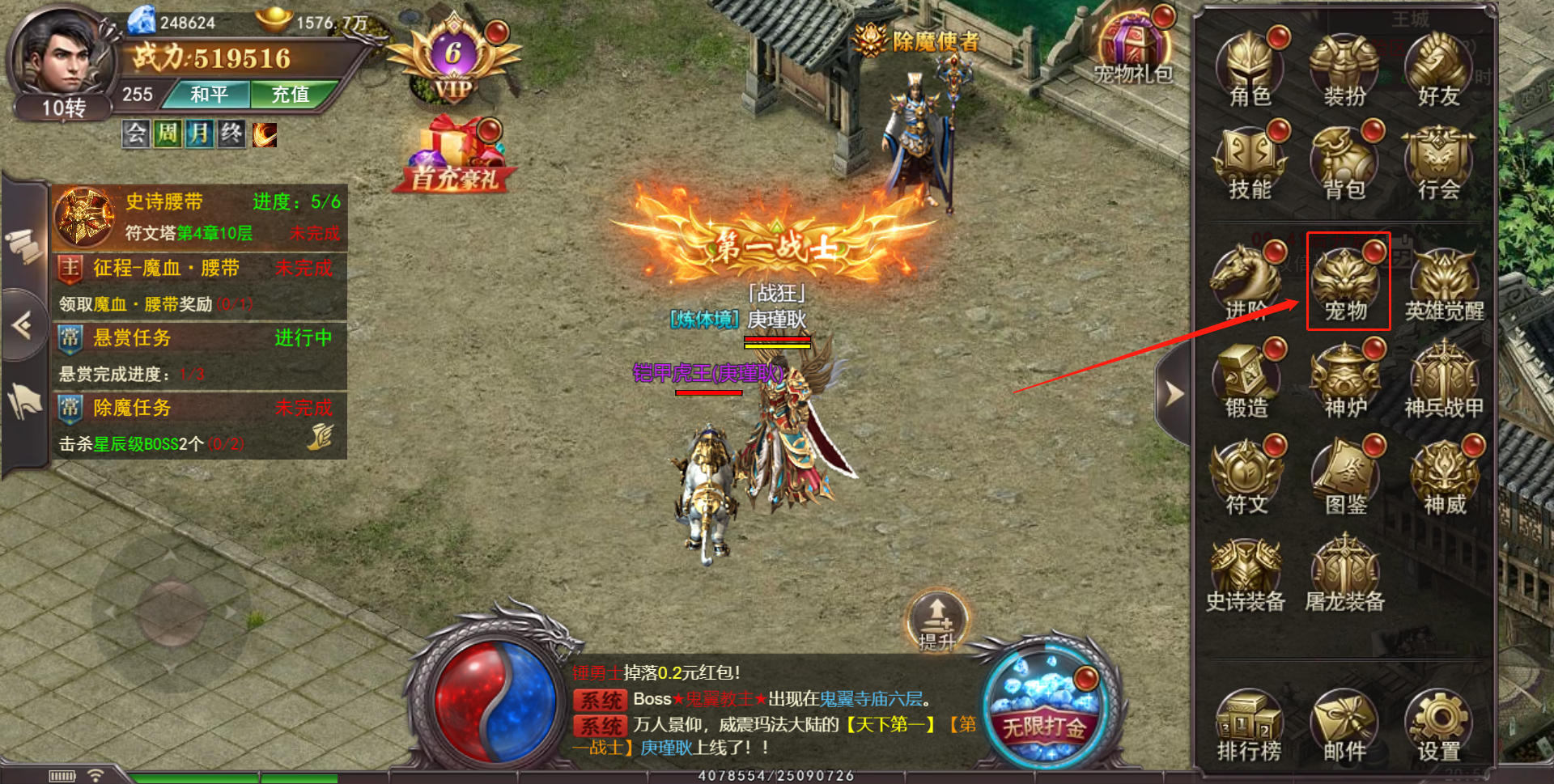 1. 完成主线任务[拯救战宠]后可激活宠物